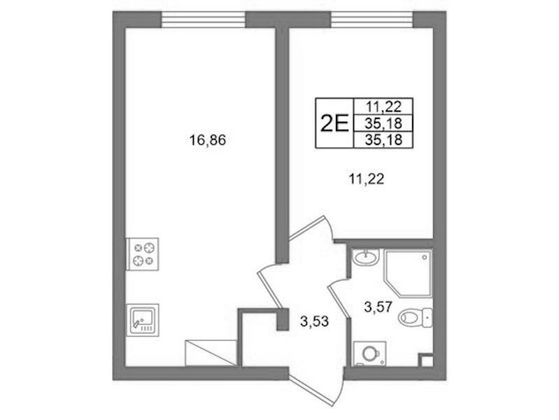 Однокомнатная квартира на 15-ом этаже 35,18 кв.м