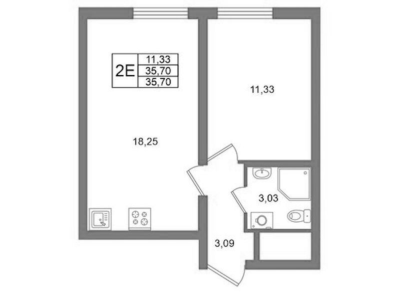 Однокомнатная квартира на 2-ом этаже 35,7 кв.м