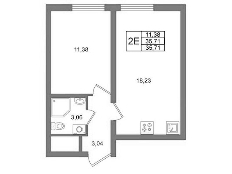 Однокомнатная квартира на 2-ом этаже 35,71 кв.м