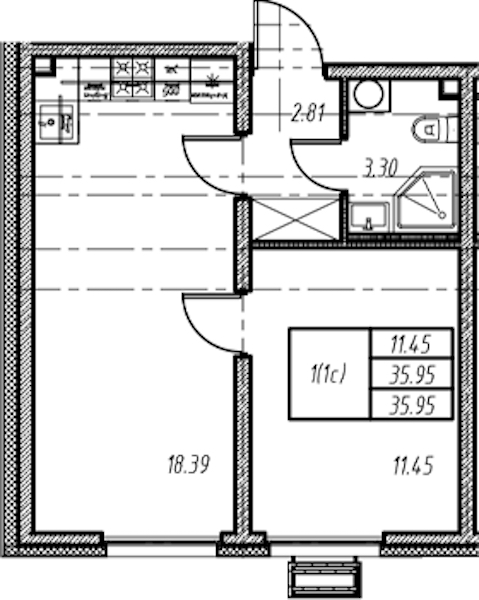 - Площадь35,95 м2