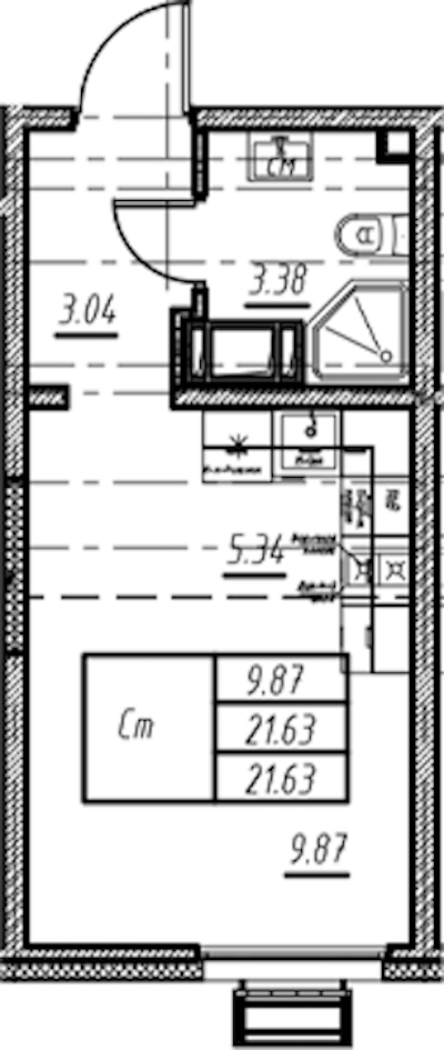 Квартира-студия на 3-ем этаже 21,63 кв.м