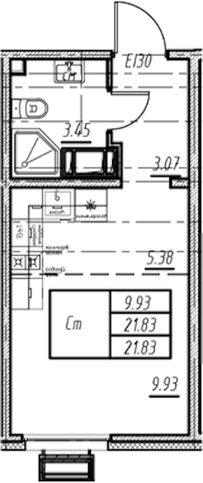 Квартира-студия на 12-ом этаже 21,83 кв.м