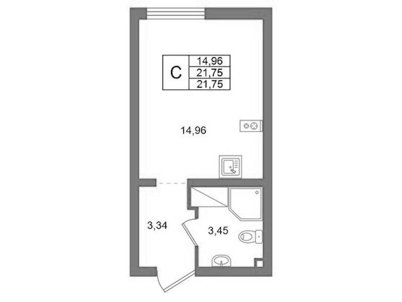 Квартира-студия на 18-ом этаже 21,75 кв.м