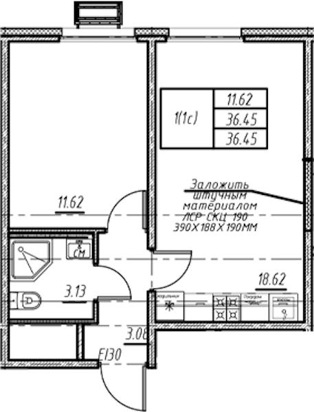 - Площадь36,45 м2