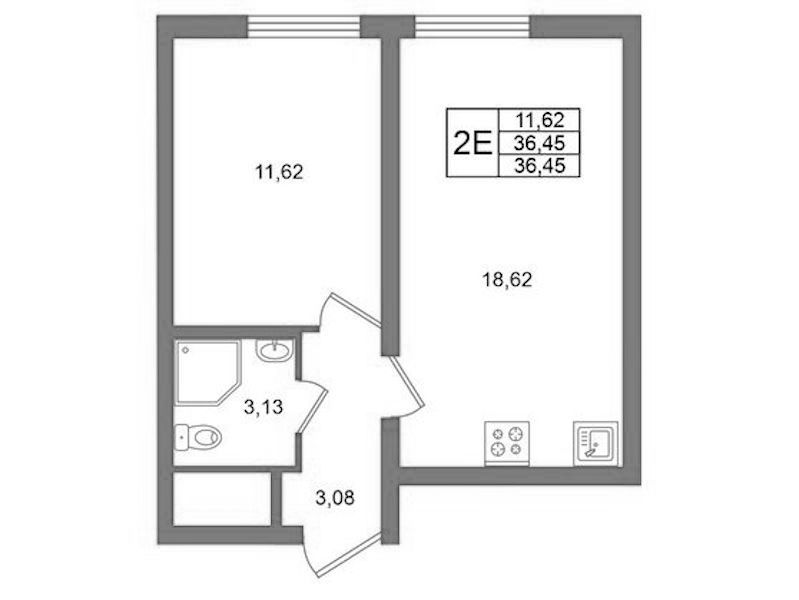 Однокомнатная квартира на 9-ом этаже 36,45 кв.м