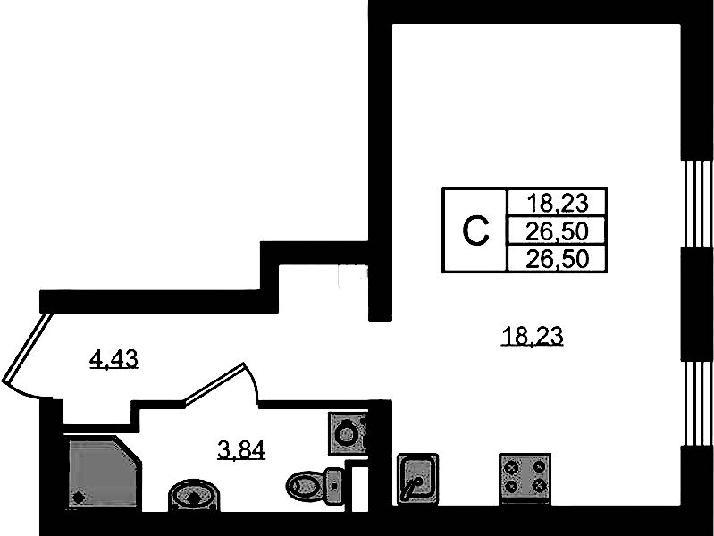 Квартира-студия на 4-ом этаже 26,67 кв.м