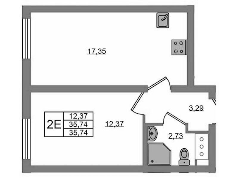 Однокомнатная квартира на 20-ом этаже 35,62 кв.м