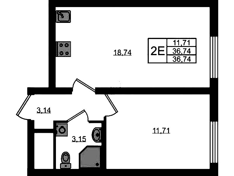 Однокомнатная квартира на 2-ом этаже 36,59 кв.м