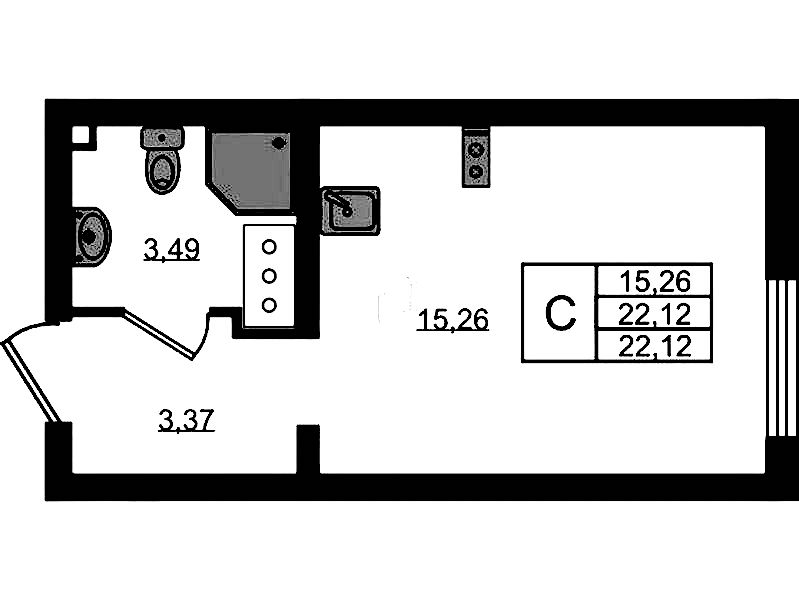 Квартира-студия на 4-ом этаже 22,43 кв.м