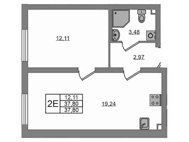 Однокомнатная квартира на 18-ом этаже 37,62 кв.м