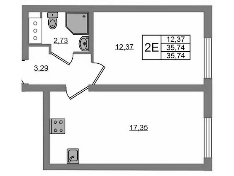 Однокомнатная квартира на 20-ом этаже 35,62 кв.м