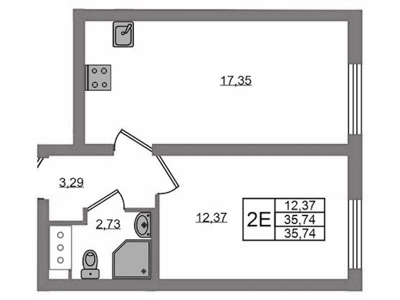 - Площадь35,74 м2