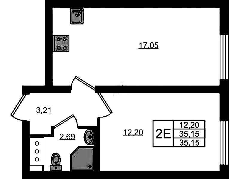 Однокомнатная квартира на 5-ом этаже 35,15 кв.м