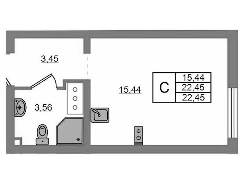 Квартира-студия на 9-ом этаже 22,45 кв.м