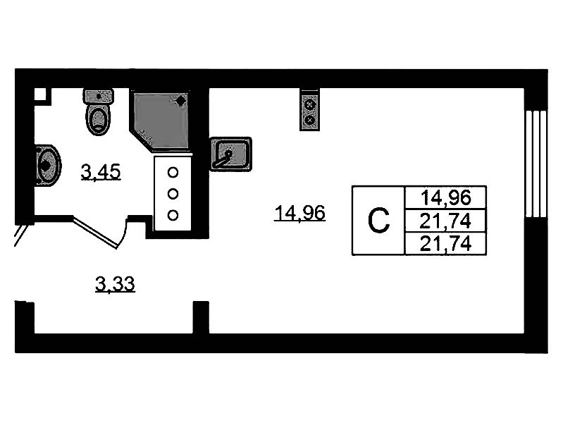 - Площадь21,7 м2