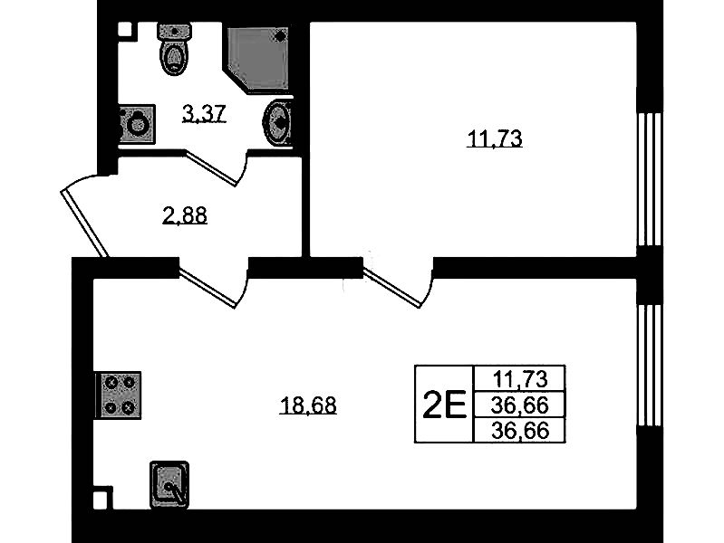 Однокомнатная квартира на 11-ом этаже 36,7 кв.м