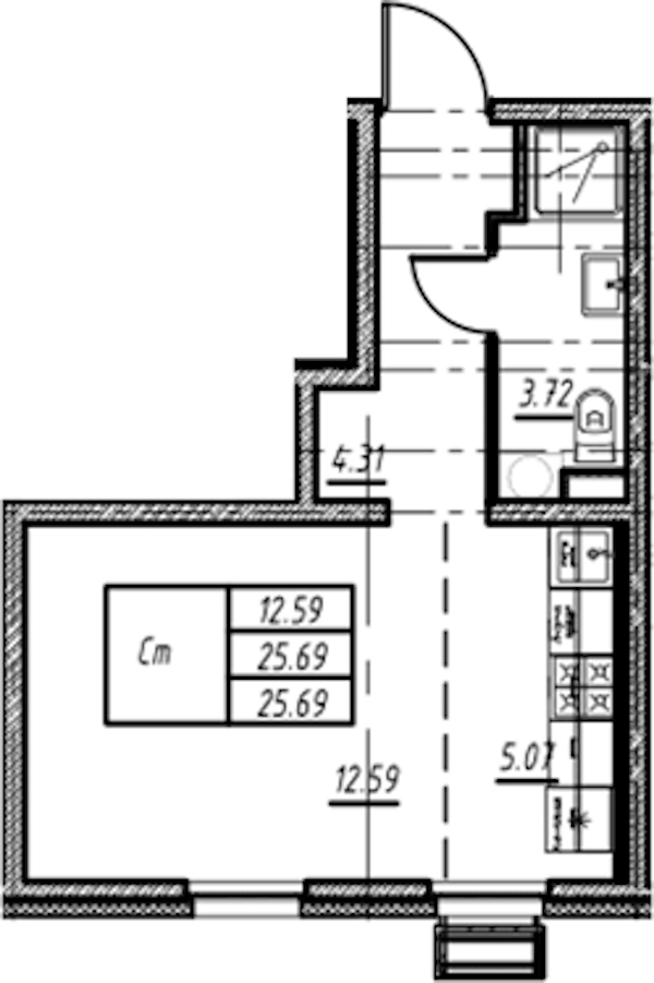 • Площадь25,69 м2