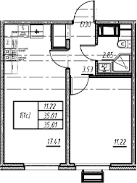 Однокомнатная квартира на 20-ом этаже 35,01 кв.м