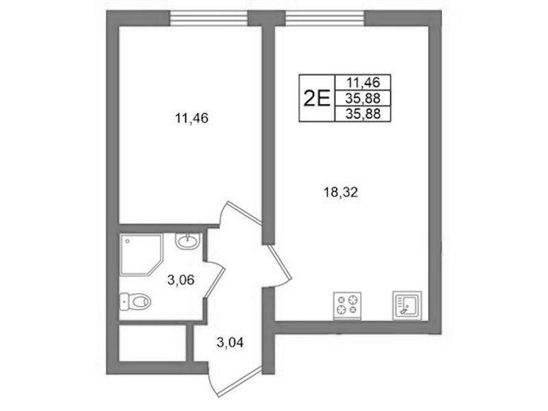 Однокомнатная квартира на 5-ом этаже 35,88 кв.м