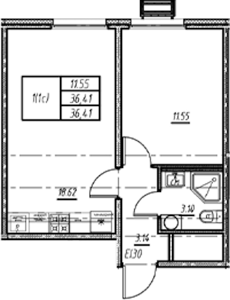 • Площадь36,41 м2