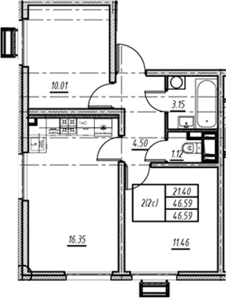 - Площадь46,59 м2