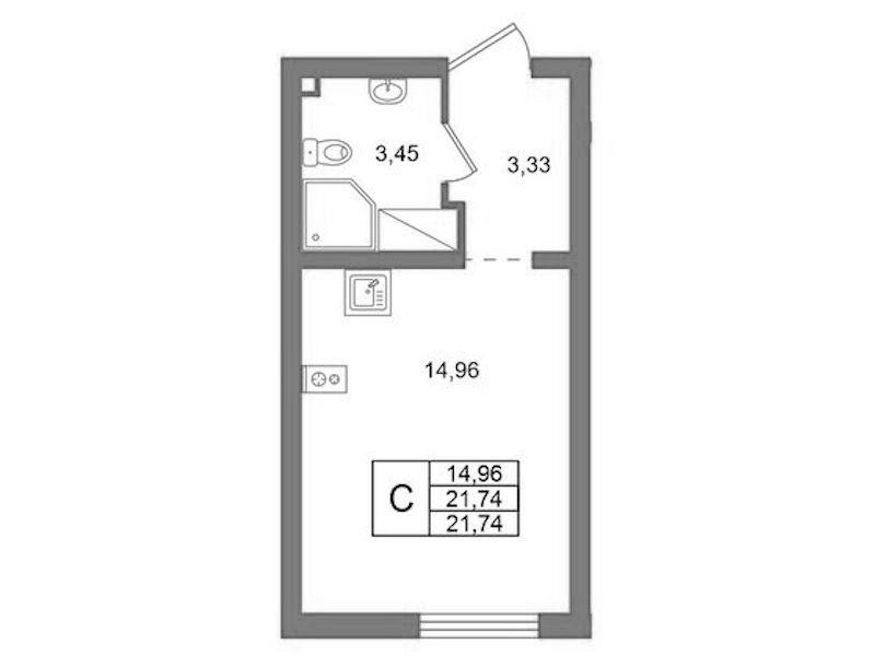 Квартира-студия на 13-ом этаже 21,74 кв.м