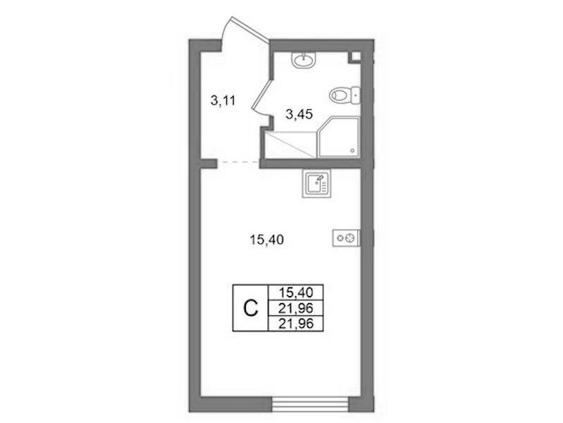 Квартира-студия на 14-ом этаже 21,96 кв.м