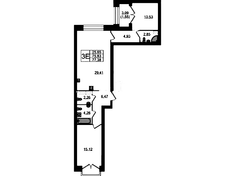 • Площадь77,38 м2