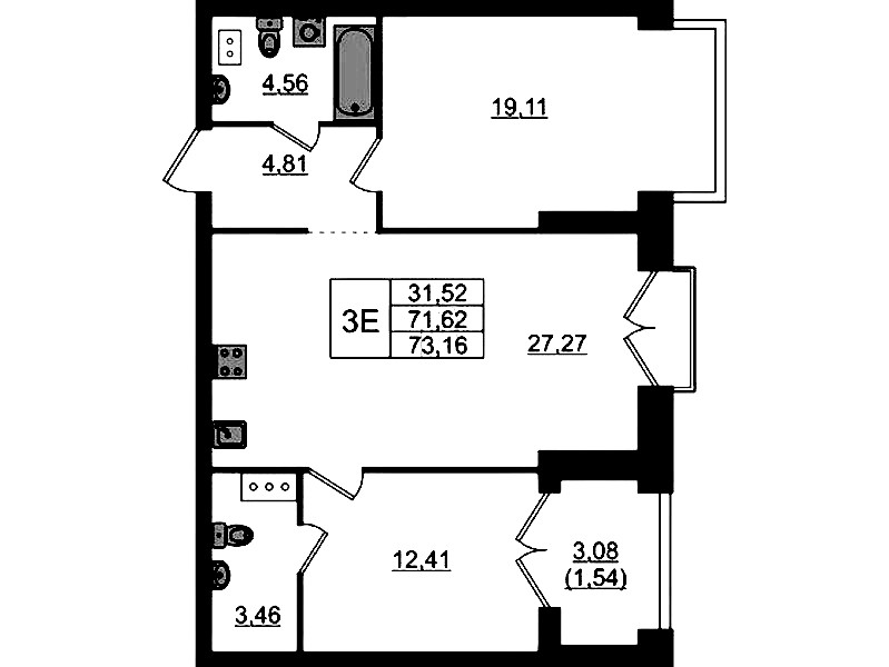 - Площадь73,16 м2