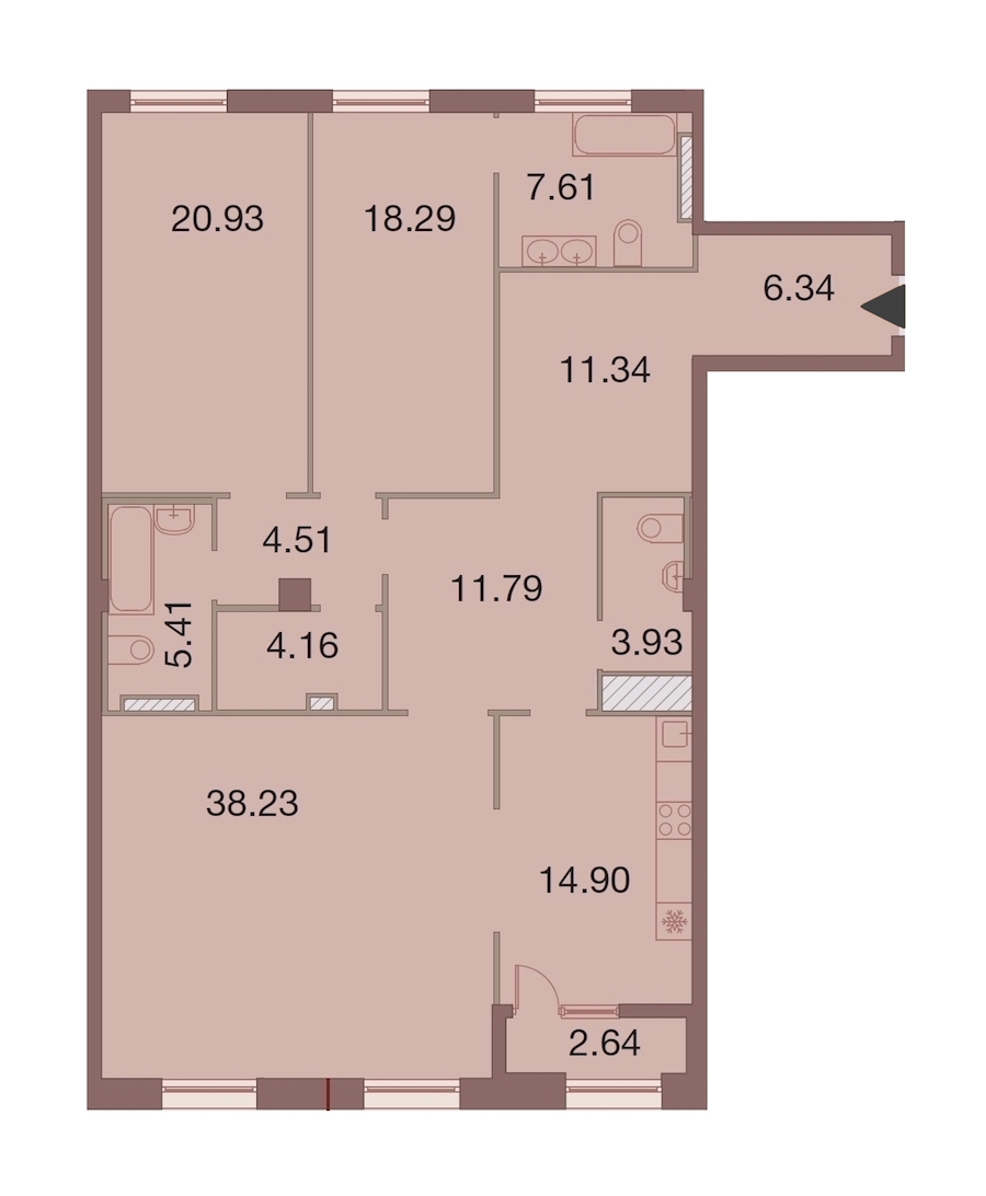 Трёхкомнатная квартира на 9-ом этаже 149,8 кв.м