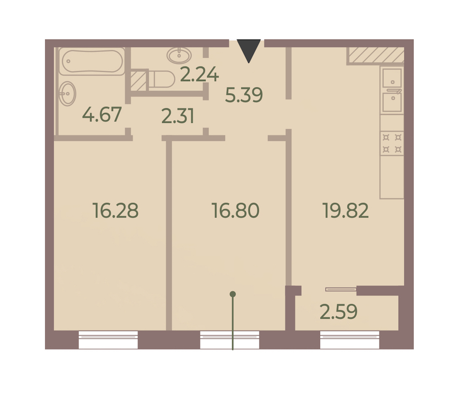 Двухкомнатная квартира на 9-ом этаже 69,1 кв.м