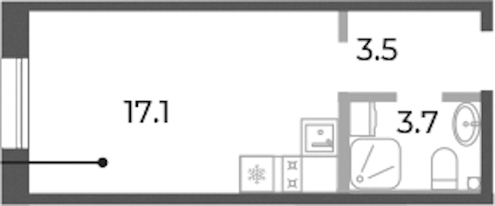 Квартира-студия на 8-ом этаже 24,1 кв.м