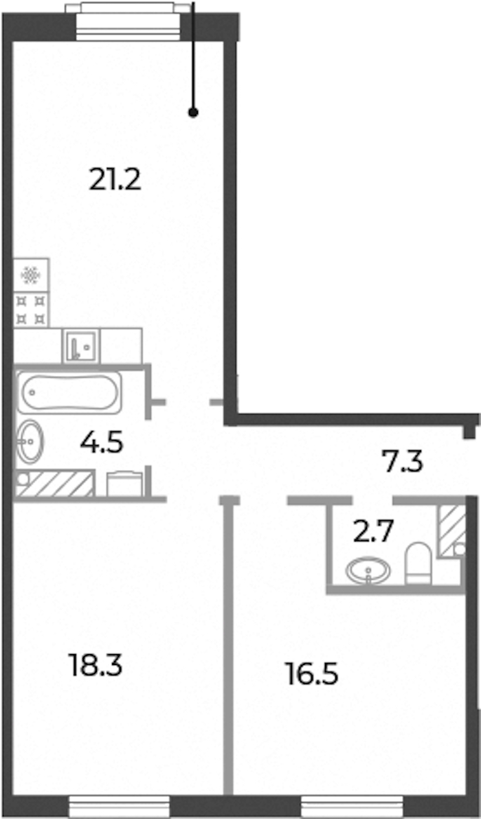 Двухкомнатная квартира на 9-ом этаже 70,4 кв.м
