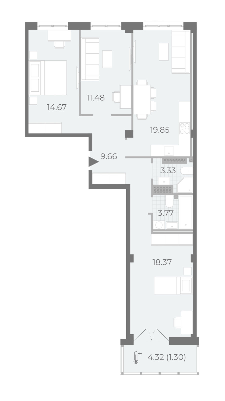 Трёхкомнатная квартира на 8-ом этаже 83,1 кв.м