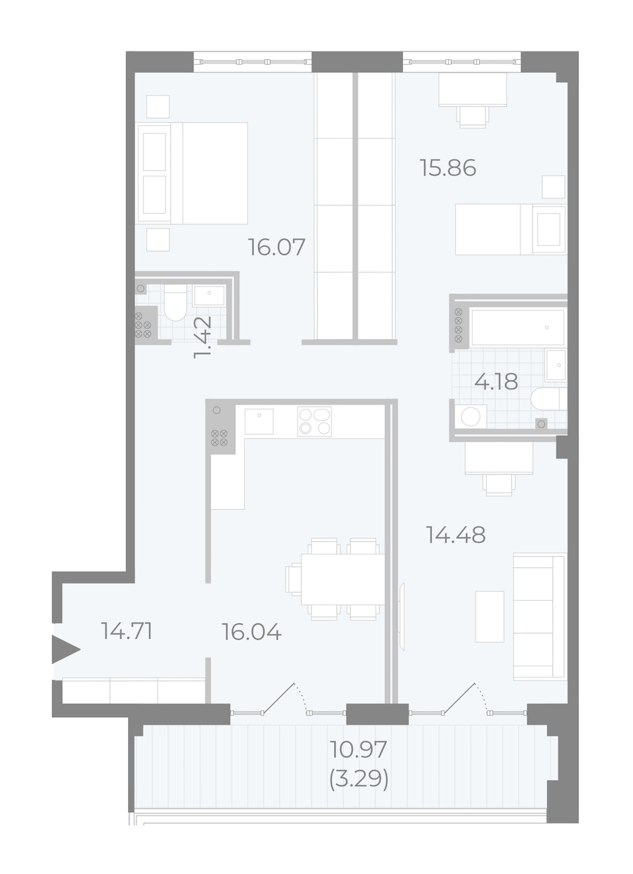 - Площадь кухни16,04 м2