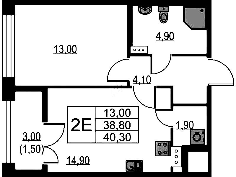 Однокомнатная квартира на 2-ом этаже 40,3 кв.м