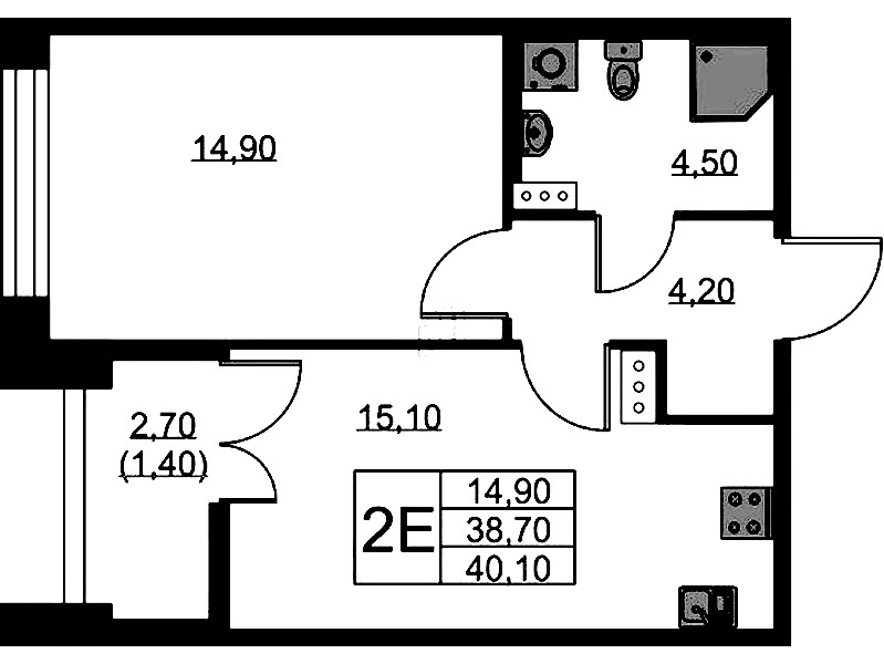 Однокомнатная квартира на 2-ом этаже 40,1 кв.м
