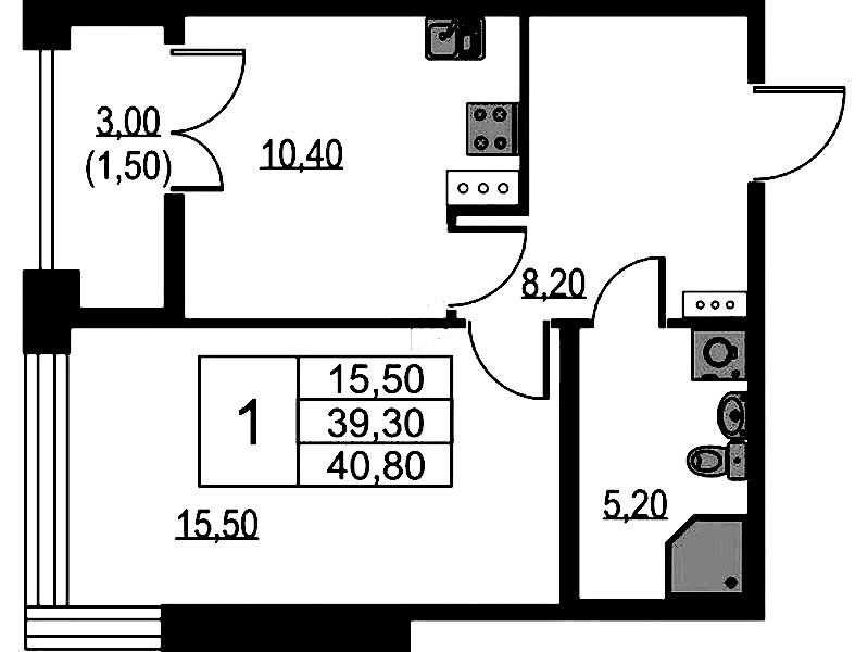 Однокомнатная квартира на 4-ом этаже 40,8 кв.м