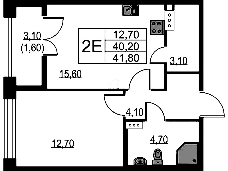 - Площадь41,8 м2