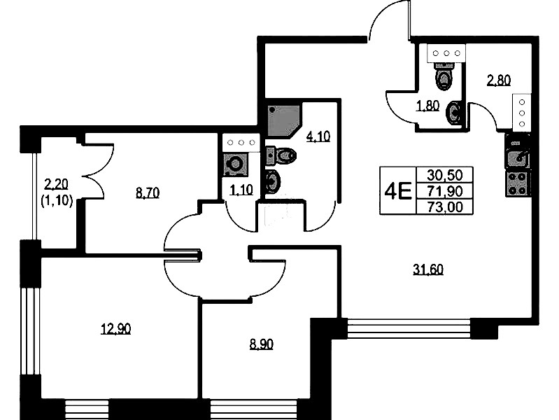• Площадь73 м2