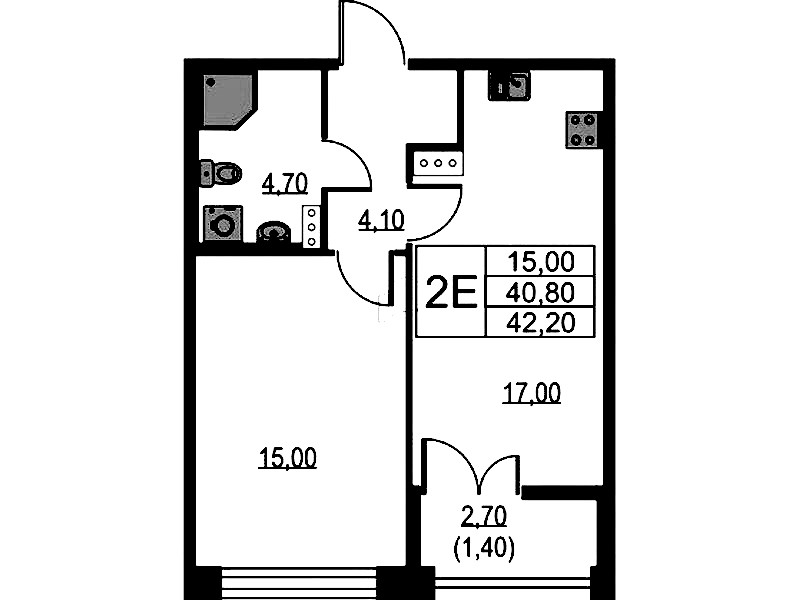 Однокомнатная квартира на 9-ом этаже 42,2 кв.м