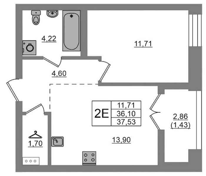 Однокомнатная квартира на 9-ом этаже 37,53 кв.м