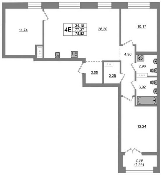 Трёхкомнатная квартира на 7-ом этаже 78,82 кв.м