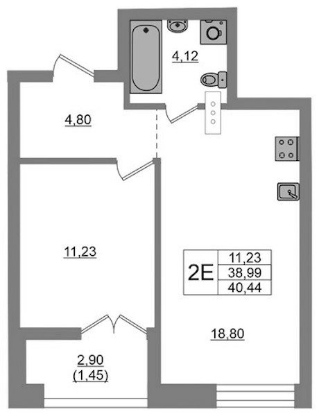 Однокомнатная квартира на 9-ом этаже 40,44 кв.м