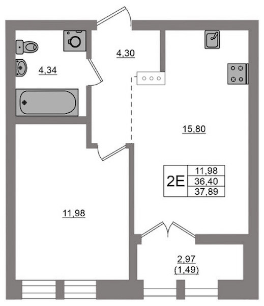 Однокомнатная квартира на 9-ом этаже 37,89 кв.м
