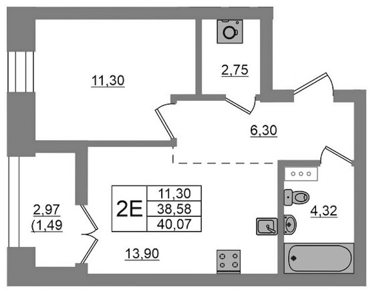 - Площадь40,07 м2