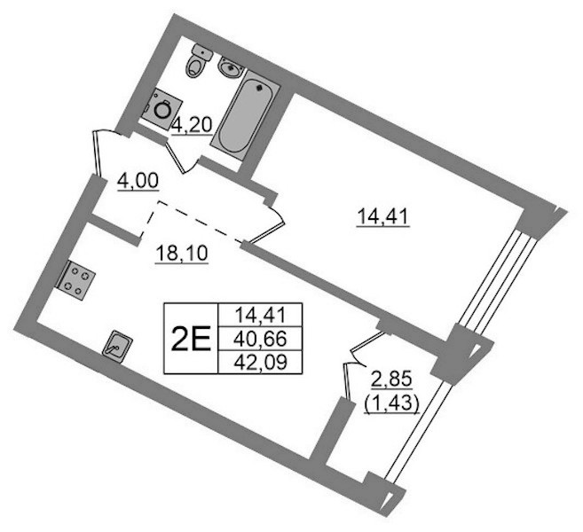 • Площадь42,09 м2