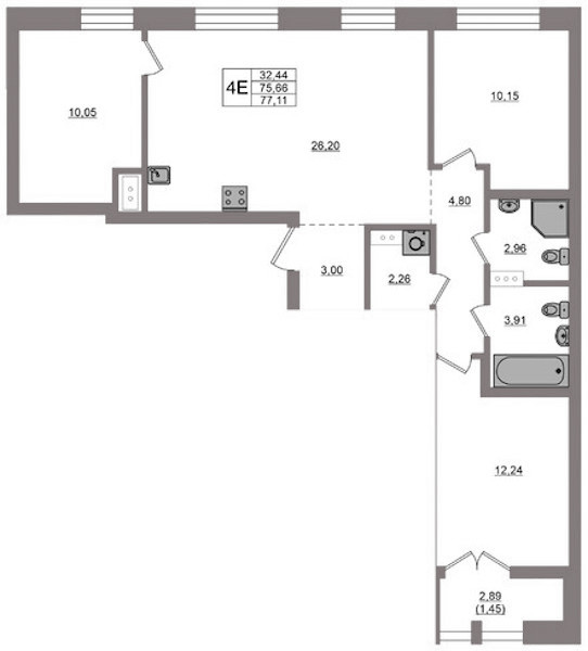 - Площадь77,11 м2