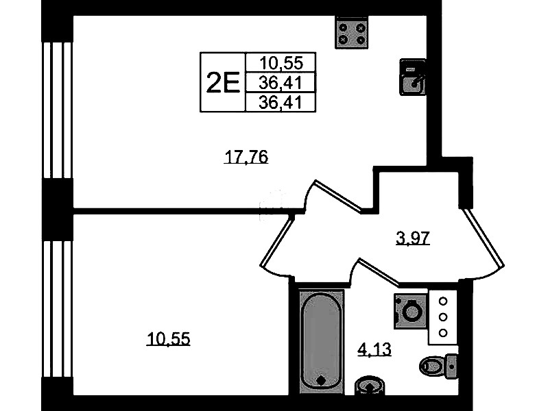 Однокомнатная квартира на 3-ем этаже 36,41 кв.м