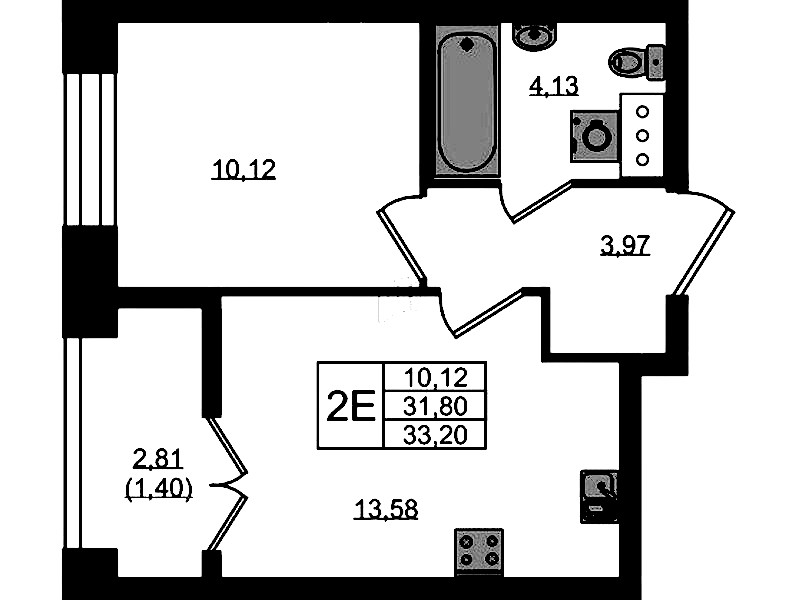- Площадь33,2 м2